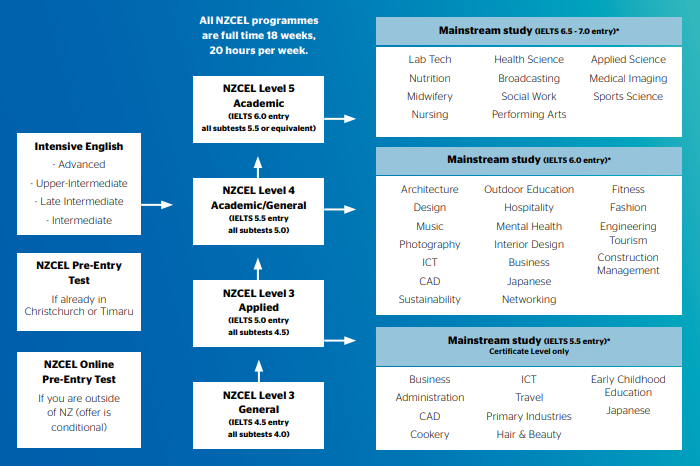 The New Zealand Certificate in English Language (NZCEL) is an NZQA qualification that lasts a lifetime. There are seven levels from beginner to advanced. These programmes can be used for further study, for work, or for general English development, aiming to extend your ability in all areas of English communication, speaking, listening, reading and writing; prepare you for further ESOL English or mainstream study; and extend your ability, confidence and comfort in a new country.